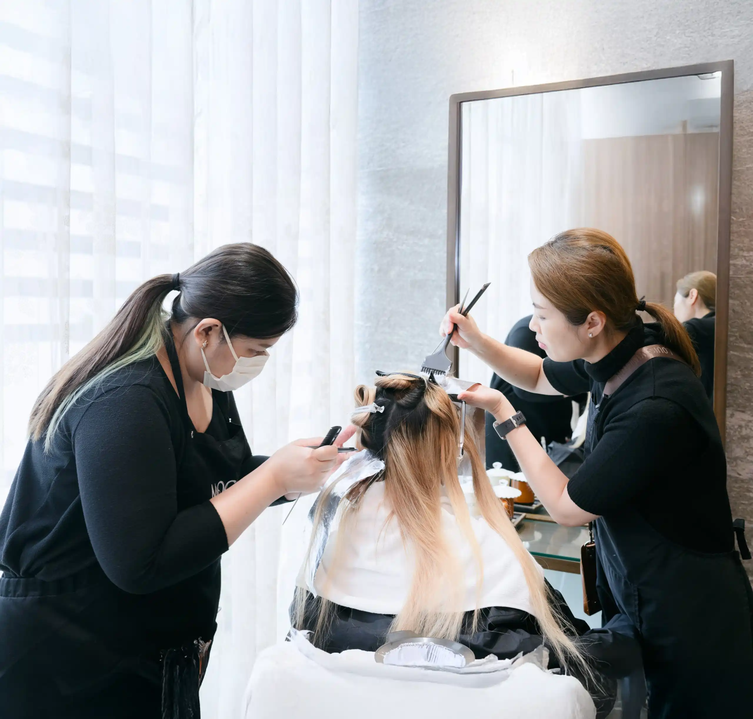 ช่างผู้เชี่ยวชาญของเราจะดูแลลูกค้าทุกท่ายตั้งแต่การเตรียมสภาพผม ช่วยออกแบบสี รูปแบบการทำสีผมไฮไลท์และ สไตล์ที่เหมาะกับทรงผม และการดูแลสีผมที่เหมาะสมหลังทำ โดยช่างของเราจะมีการอัปเดตเทรนด์สีผมตลอดเวลาจากเทคนิคต่างชาติเพื่อตอบโจทย์ความต้องการใหม่ ๆ ของลูกค้า